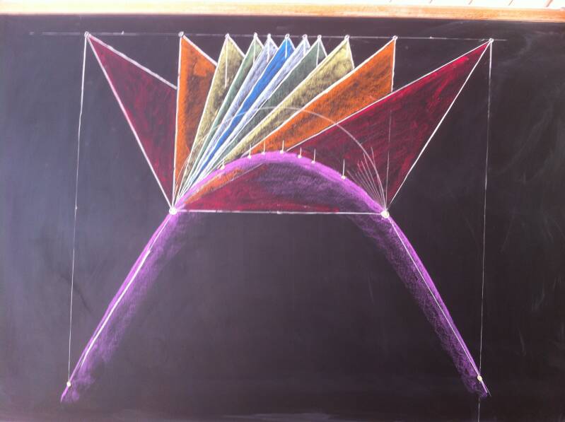 In al mijn periodes wiskunde en natuurkunde heb ik geprobeerd om de lessen kunstzinnig (in ieder geval esthetisch) te verlevendigen met mooie bordtekeningen. De leerlingen maakten die met mij mee in hun schrift. De vreugde van het maken van mooie tekeningen die echt aansluiten bij de stof moet niet onderschat worden. Het maken van een mooie tekening op een krijtbord is een kunde die echt veroverd moet worden. Een uitdaging voor elke vrijschooldocent.